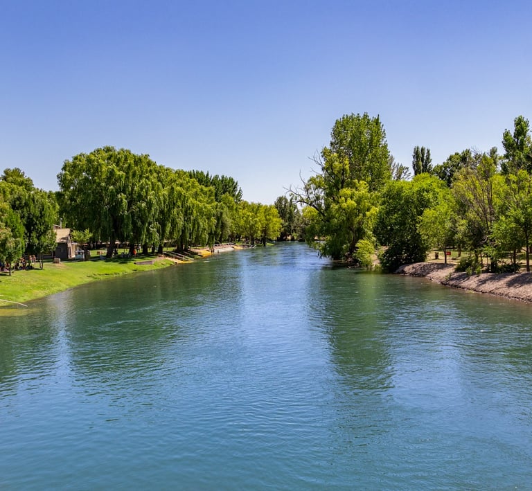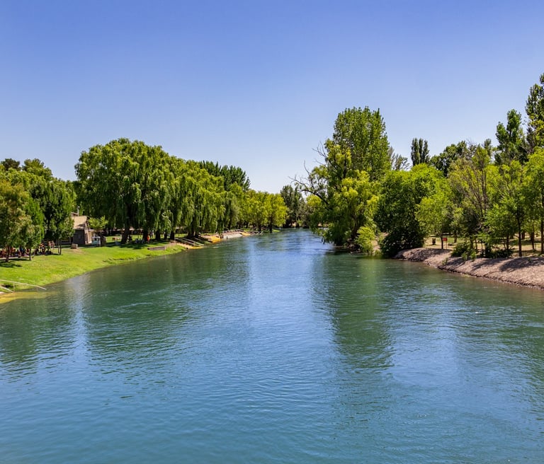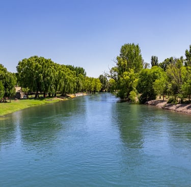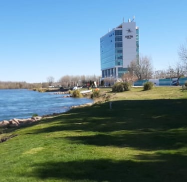 Estamos situados en una zona residencial tranquila y verde, a solo 300 metros del río Limay y cerca de la ciudad.